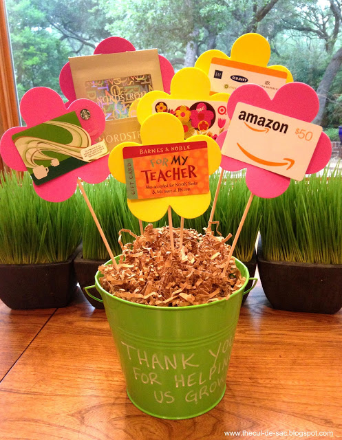 Fruit basket- Teachers can always use yummy and healthy snacks. Put colorful fruit in a basket. You don't have to buy a basket you can make one from a paper plate and a cute ribbon!